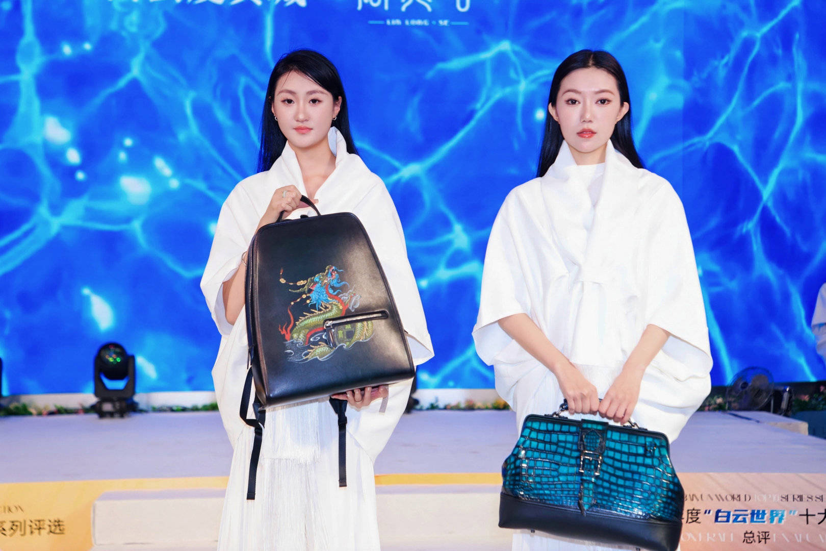 晋级20强的品牌携年度新品惊艳亮相。在聚光灯下,专业模特依次登台。T台上,每一件作品都展现了精湛的工艺与独特的美学设计。品牌代表在台上精彩发言,深入解读品牌理念与设计美学,将现场气氛推向高潮,充分展现了白云皮具城作为“时尚产业策源地”的无限活力。